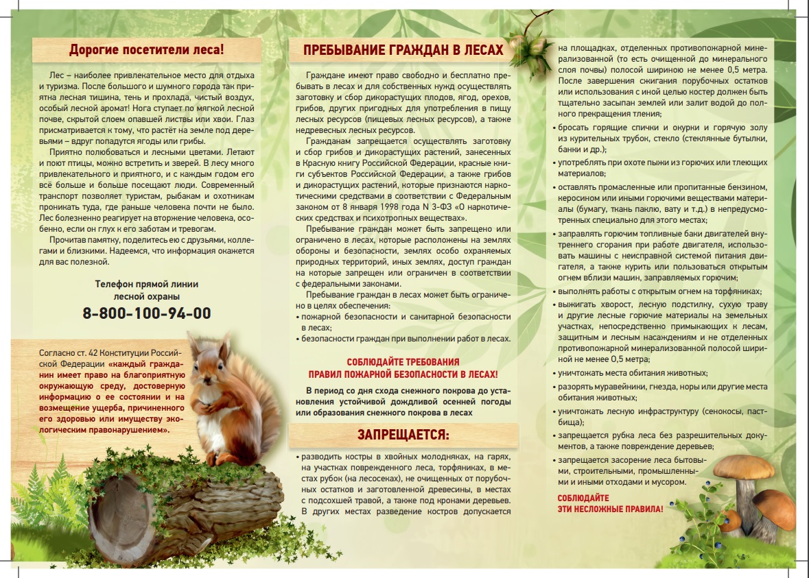 Памятка пребывания граждан в лесах Российской Федерации