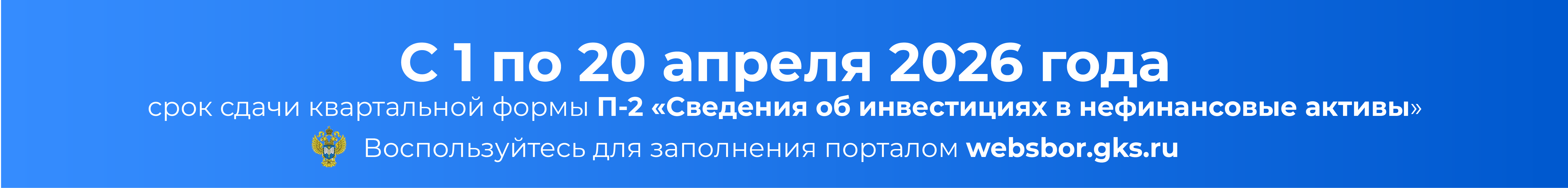 Юридическим лицам с 1 по 20 апреля 2026 года необходимо направить первичные статистические данные по квартальной форме федерального статистического наблюдения № П-2 «Сведения об инвестициях в нефинансовые активы».