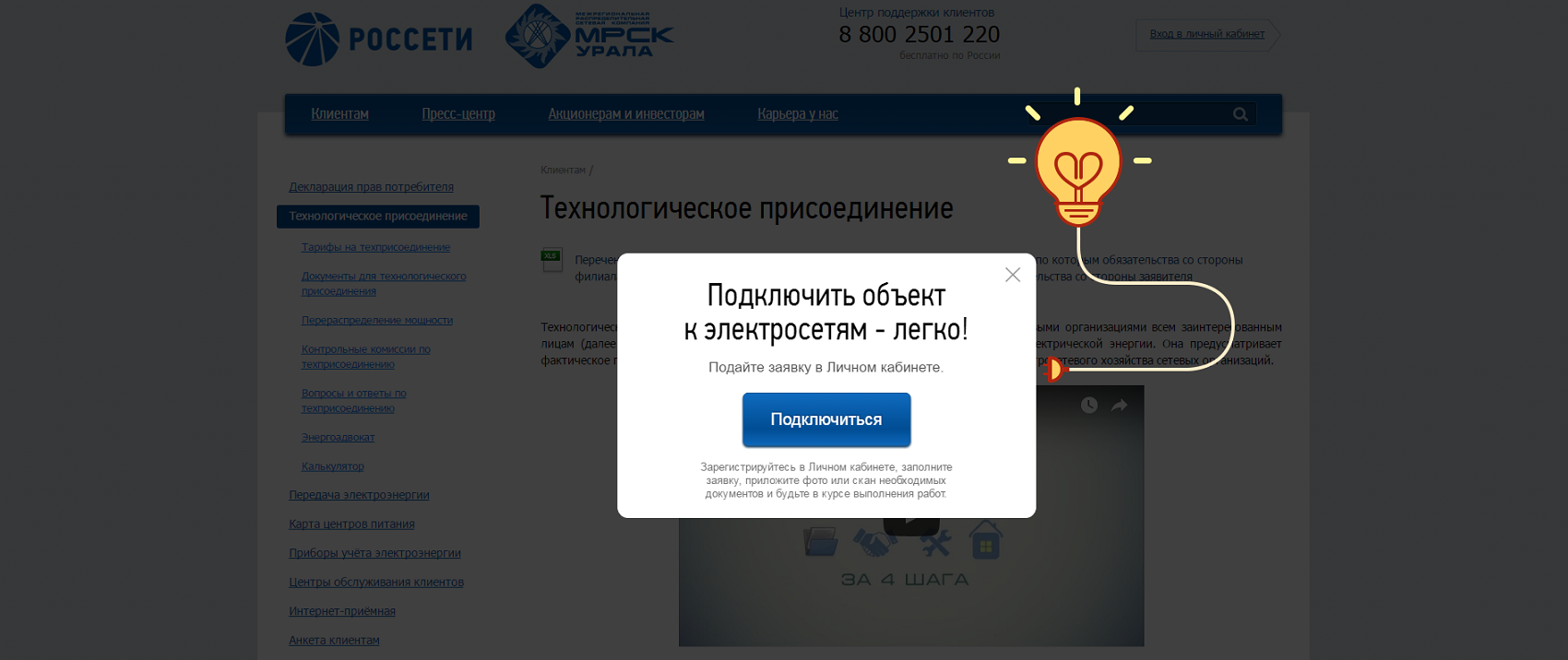 На сайте ОАО «МРСК Урала» создана информационная система «Личный кабинет клиента по технологическому присоединению»