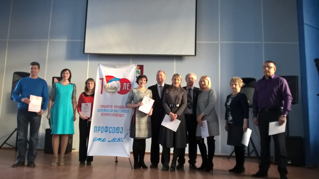 В торжественной обстановке состоялось награждение лидеров отраслевых профсоюзных организаций. Завершилось мероприятие вокальным выступлением участников профсоюзной организации ВСМПО: Станислава Дёрова, Николая Шильчикова и Александра Иванова.