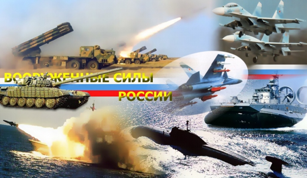Территориально Вооруженные Силы РФ делятся на пять военных округов: Западный (штаб в Санкт-Петербурге), Южный (Ростов-на - Дону), Центральный (Екатеринбург), Восточный (Хабаровск), Северный флот (Североморск). В настоящее время на вооружении российских войск состоят танки Т-72,Т-80, Т-90,боевые машины БМП -1, БМП-2, БМП-3, бронетранспортеры БТР-70, БТР-80, БТР-82, реактивные системы залпового огня «Град», «Ураган», «Смерч», « Солнцепек», «Торнадо-Г», тактические ракетные комплексы «Точка», «Искандер-М», системы противовоздушной обороны «Бук», «Тор», «Панцырь-С», С-300, С-400, ПЗРК «Верба». В ближайшем будущем предполагается серийная поставка в войска принципиально нового танка Т-14 на платформе «Армата», БМП нового поколения «Курганец» и БТР «Бумеранг», значительно превосходящие лучшие зарубежные аналоги. В 2018 году завершится разработка артиллерийского комплекса «Коалиция-СВ», особенность которого – полная автоматизация стрельбы.