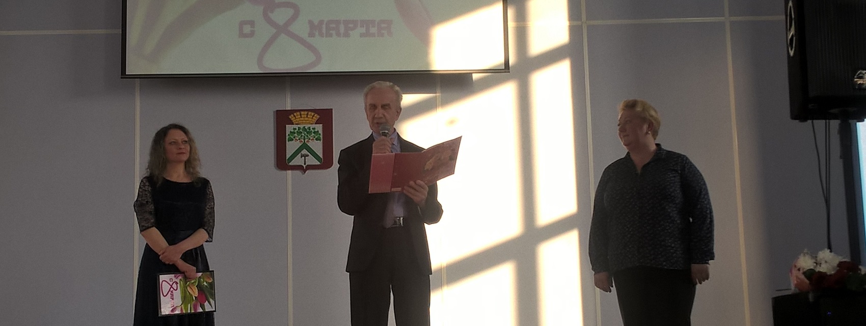 В канун главного весеннего праздника – Международного женского дня – в большом здании администрации прошёл торжественный концерт для прекрасных дам муниципальных организаций и предприятий. Череду поздравлений открыли глава Верхнесалдинского городского округа Михаил Савченко, председатель Думы городского округа Игорь Гуреев и помощник депутата Законодательного собрания Свердловской области Евгения Лутохина – Евгений Баженов.