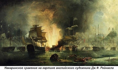 20 октября 1827 года в Наваринской бухте Ионического моря, на юго-западном побережье греческого полуострова Пелопоннес произошло крупное морское сражение между объединённым флотом России, Франции и Англии, с одной стороны, и турецко-египетским флотом, с другой. Эта морская баталия стала одним из решающих событий Греческого национально-освободительного восстания 1821−1829 годов.
